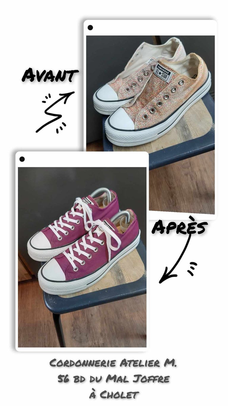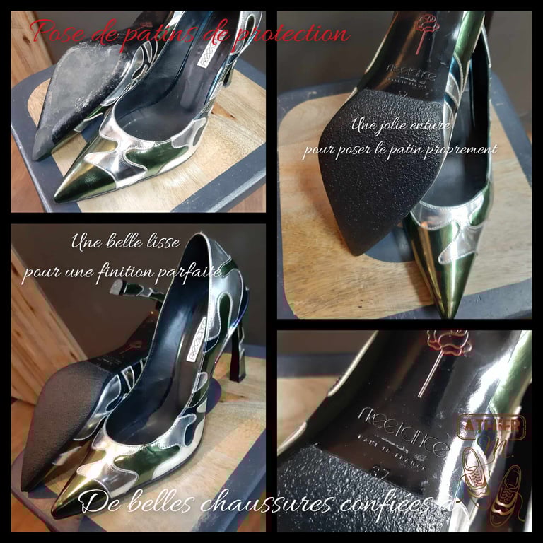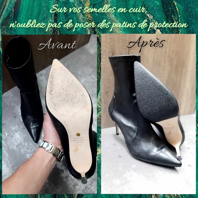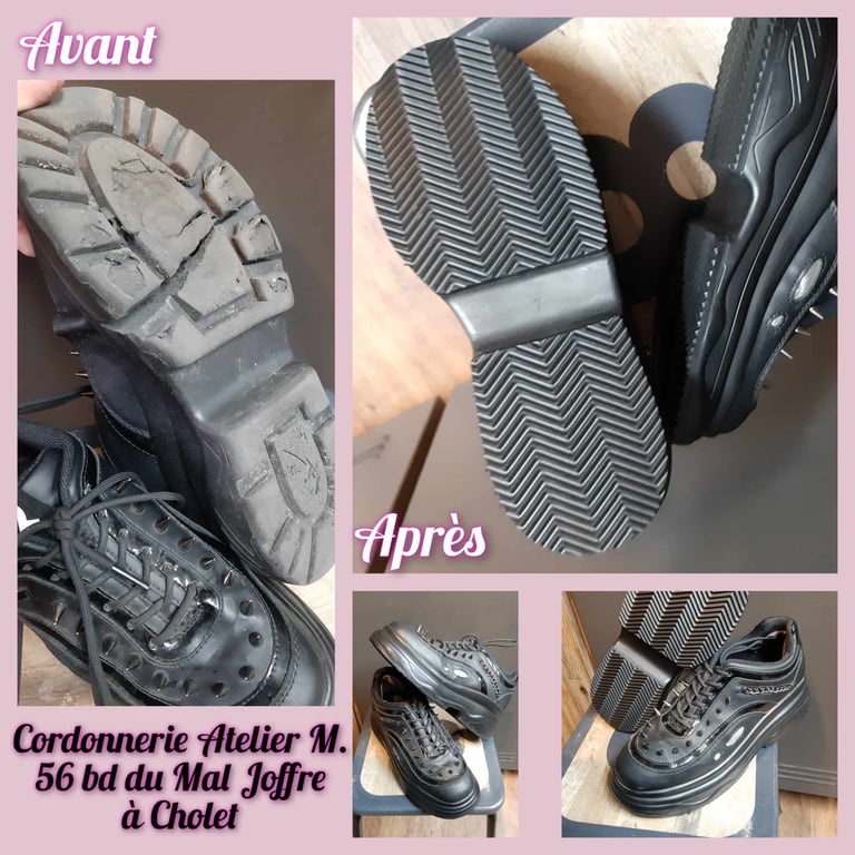 Réparation de chaussures et entretien de maroquinerie.